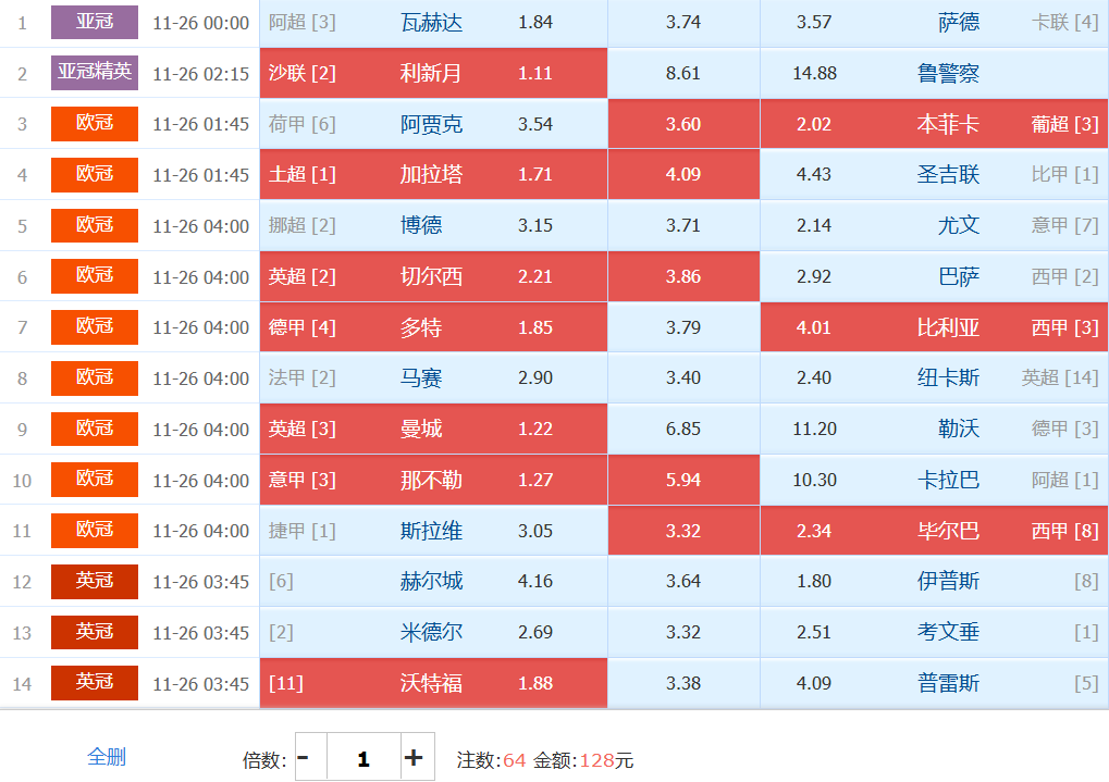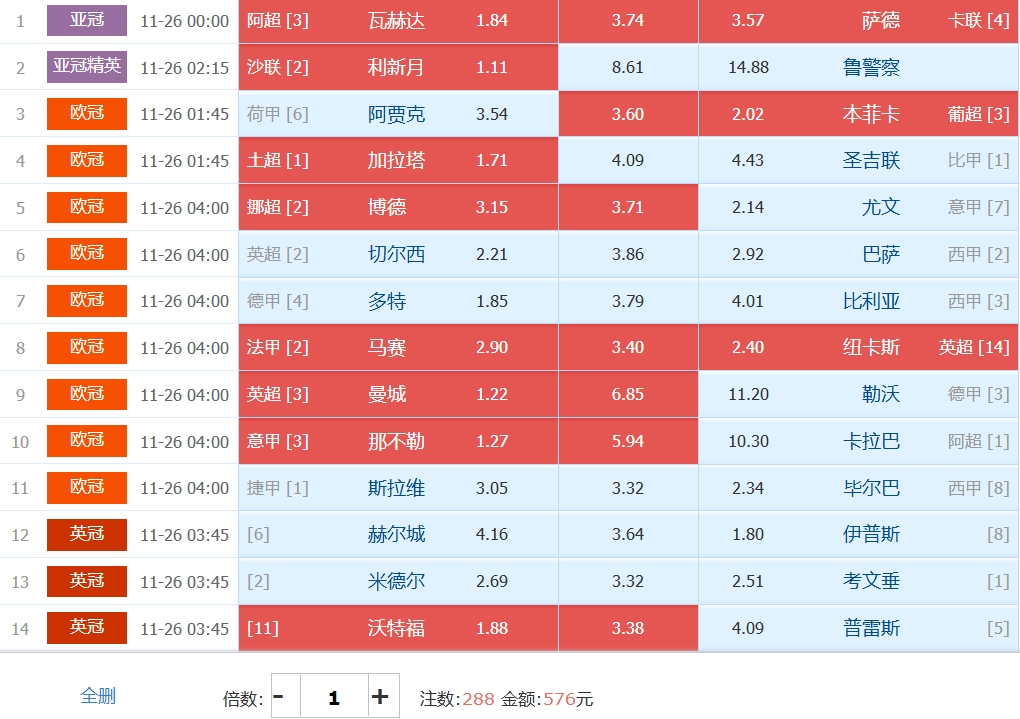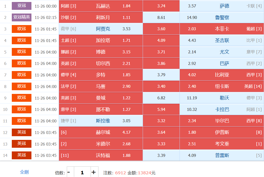 3.曼城主场能否为挂帅献礼?:本场比赛是曼城主帅瓜迪奥拉执教球队的第100场欧冠里程碑,下周末联赛曼城虽输球,但在欧冠赛场3胜1平保持不败,而勒沃库森近期状态虽然不俗,但来到欧冠赛场球队的硬实力仍是硬伤,本场比赛曼城的战意毋庸置疑,目前小单曼城值得做胆,大单还是要防平!