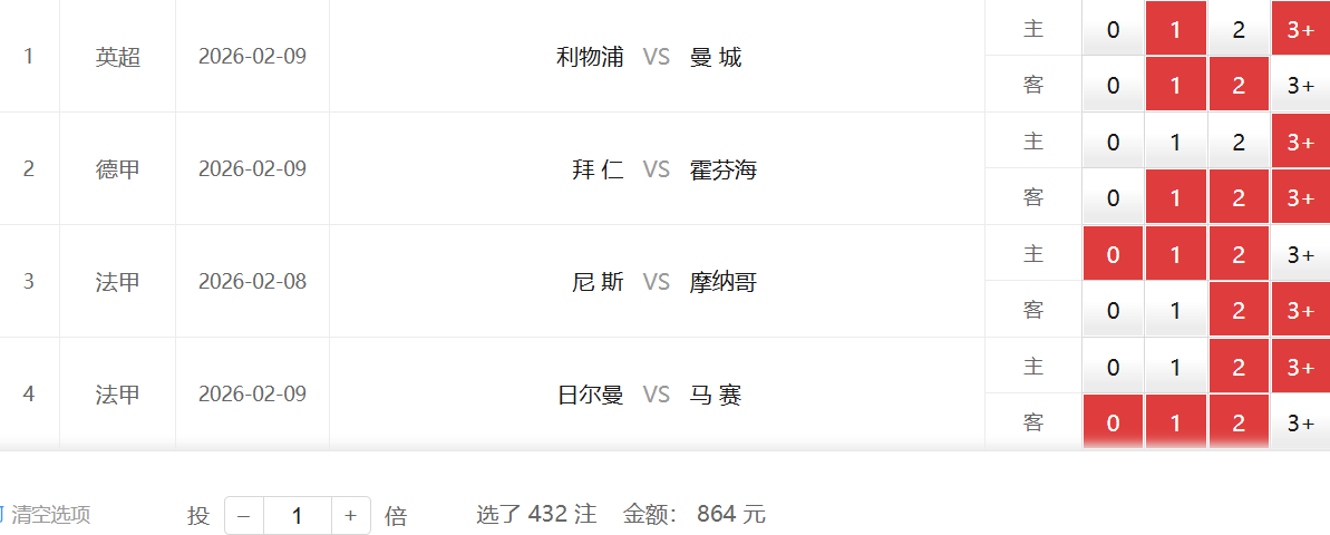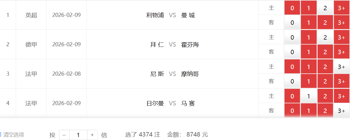 解析:今日4场进球——1.75数据和1.25数据各1场,0.25数据2场,奖金跨度较大,864方案瞄准的就是火锅奖,8748方案为大奖预留空间,建议大家对号入座。