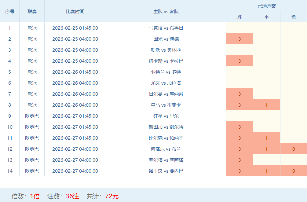 胜负彩梦想单:
