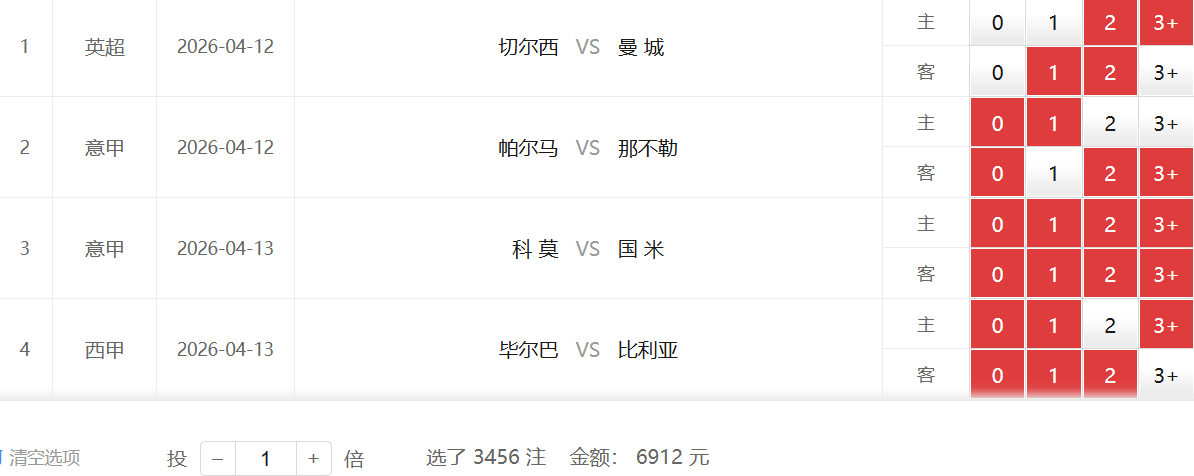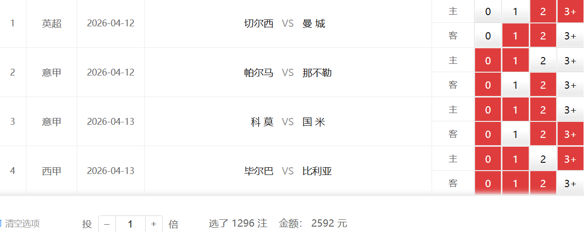 冷门场次:切尔西vs曼城——2:1/2:2