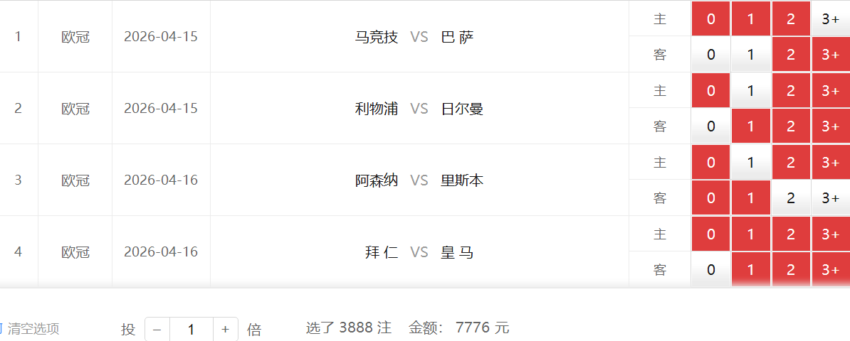 解析:今日4场进球——1数据、1数据、0.75数据和0数据各1场,今日需要在总进球方面做文章,小比分杀伤力更强!2592小单奖金上限并不高,建议大家可以自行做减法,反之7776方案奖金上限很高!