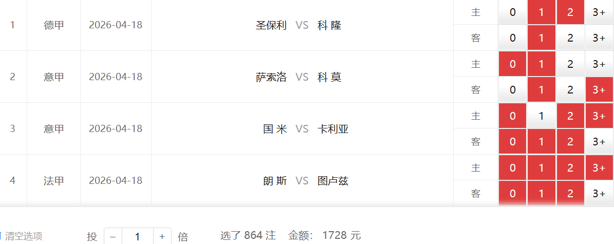 标题:4场进球实战:小单1728方案+大单7776方案!