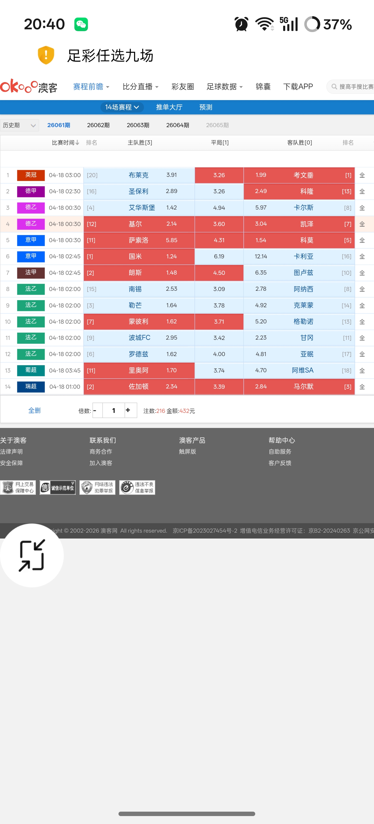 占据主場优势与状态尚佳的國際米蘭與近期狀回升的里奧阿維主胜。同状态穩定上升的科隆客胜优先做本期的三个精选胆材。
